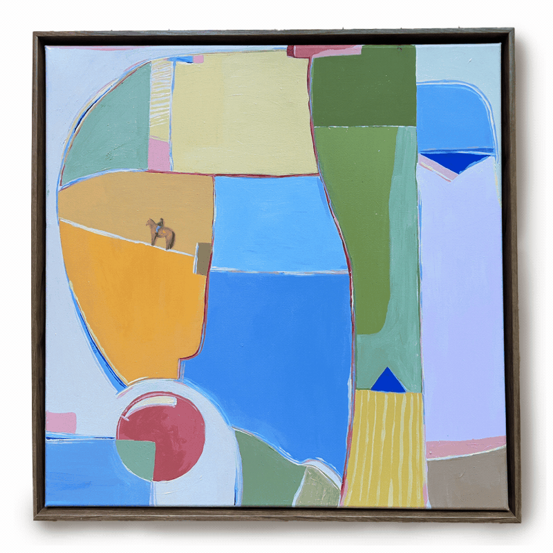A large abstract print with one little cowboy who goes wherever you put him.